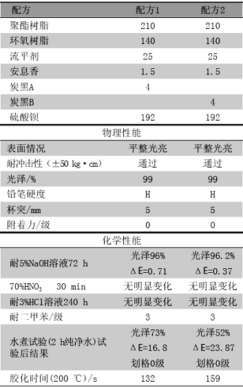 表 4 不同炭黑对粉末涂料性能的影响