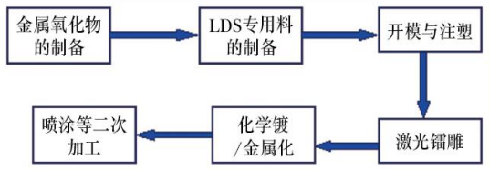 LDS技术实现的工艺流程包括六步,如图3所示。具体的说,完整的LDS技术工艺流程包含以下六个步骤: