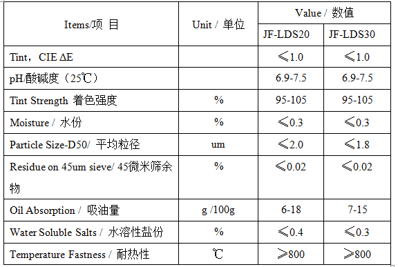 对固相法合成的粒子进行表面处理,使之符合化镀PC/ABS等镭雕改性材料的强度、粘结等物理机械性能,并达到相较于传统无机材料,化镀优异、绝缘突出、着色均匀、分散良好、强度优良等要求。